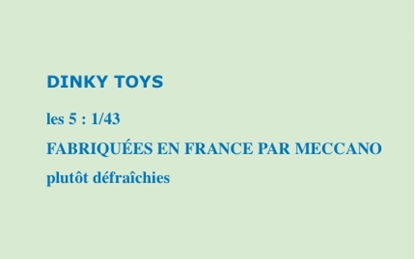 Créée en 1933 au Royaume-Uni, une série française de Dinky Toys fut produite en France dès 1934.